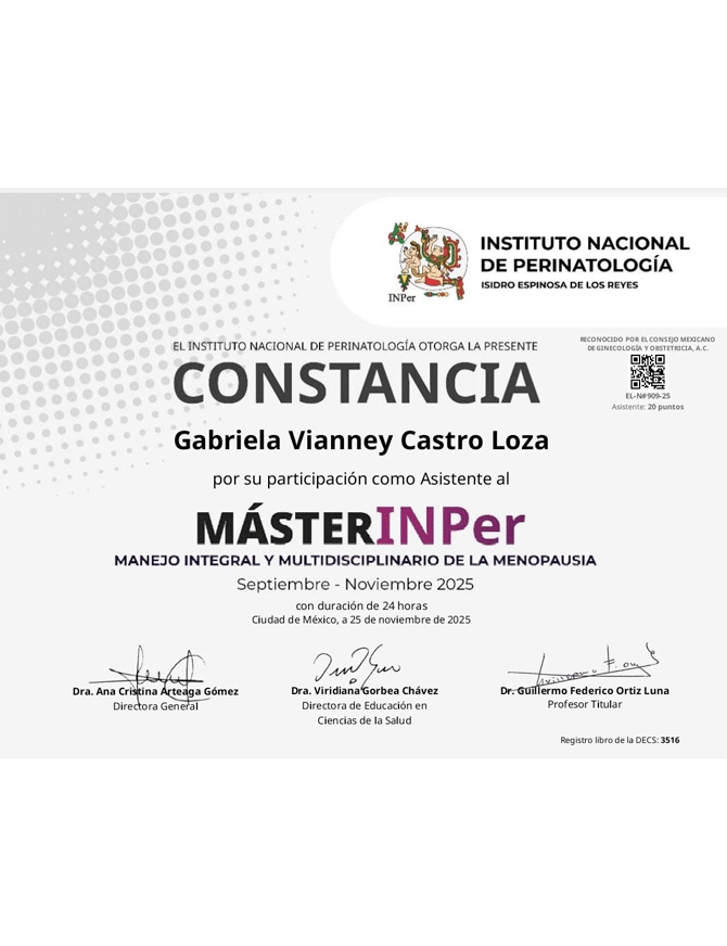 Durante la especialidad, obtuve el segundo mejor promedio de mi generación y cuento con la certificación del Consejo Mexicano de Ginecología y Obstetricia.